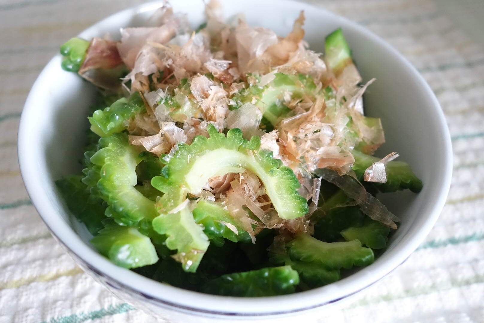 :ゴーヤは細かい味付けをするよりこれが1番苦さを和らげる気がします。鰹節をたっぷりかけてお醤油をかけるだけでたっぷり食べられます。