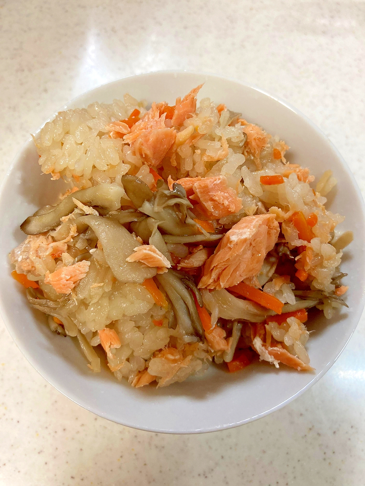 レシピタイトル:【簡単】鮭とまいたけの炊き込みご飯