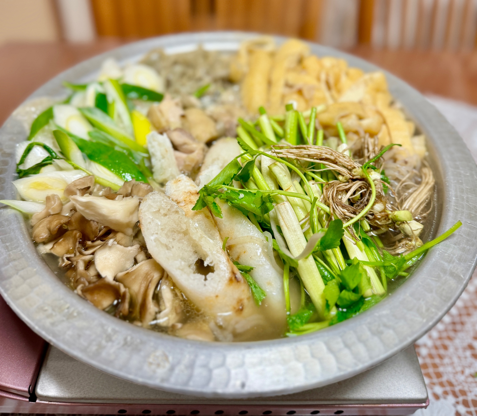 :旅行先の秋田で食べたきりたんぽ鍋を思い出してꈍ◡ꈍ 出汁がきりたんぽにしみてグッ! ( *˙︶˙*)و