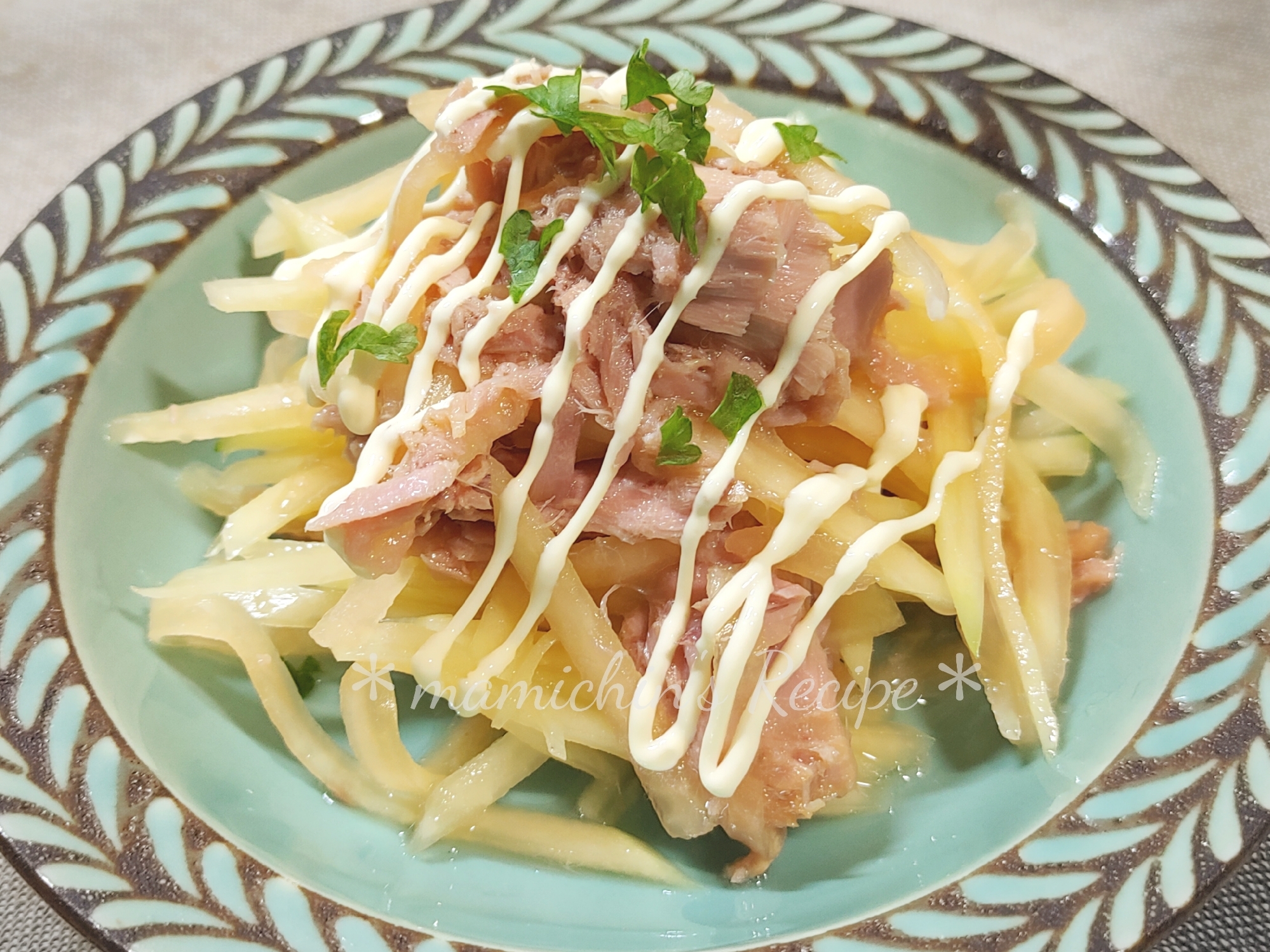 :青パパイヤ〜 シャクシャクした食感と ほんのり〜フルーツの甘さでとっても美味♪ ツナと合わせて 和風のサラダにしました*✧
