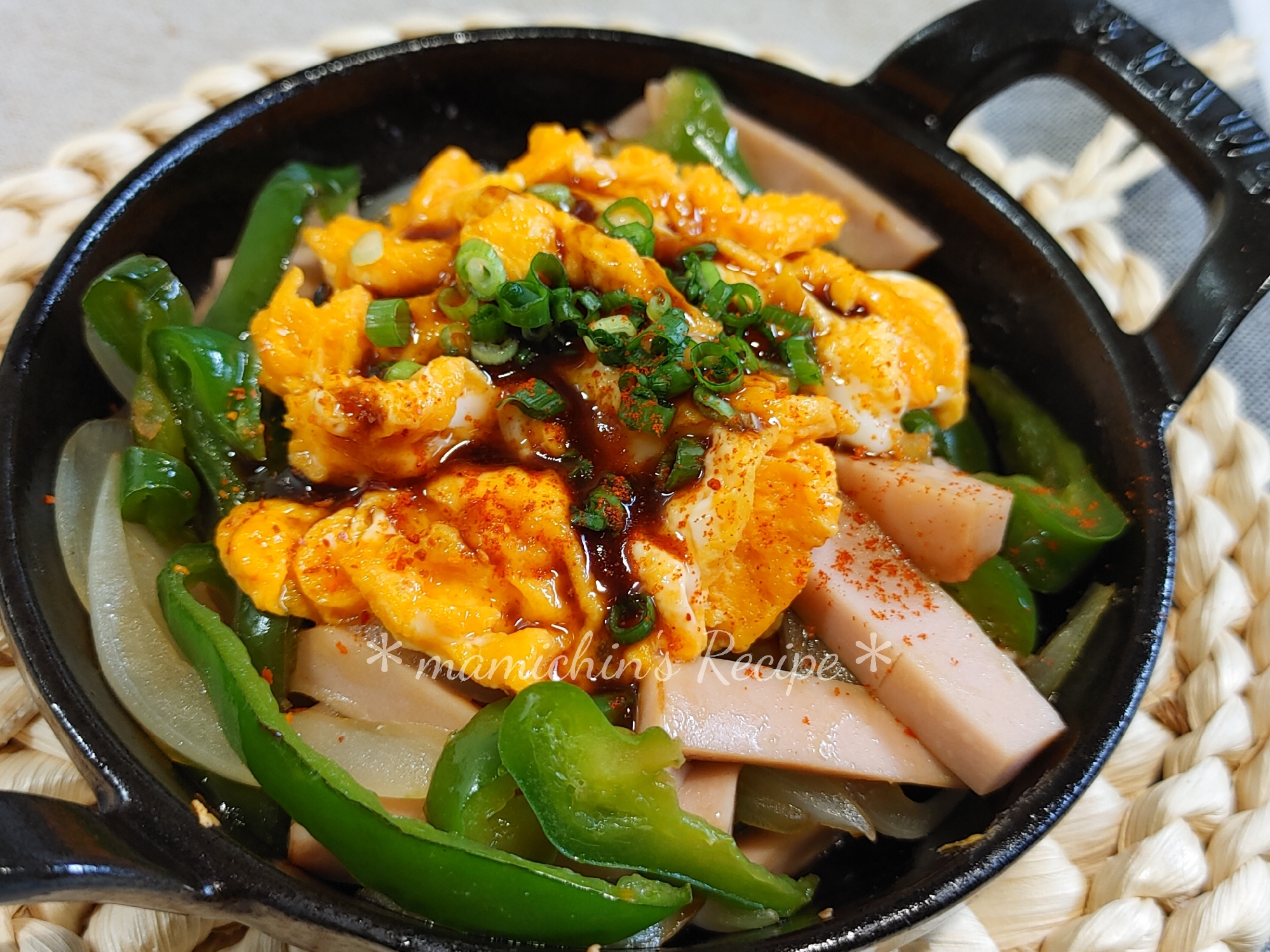 ストウブ12㌢〜魚肉ソーセージ*ピーマンONたまご