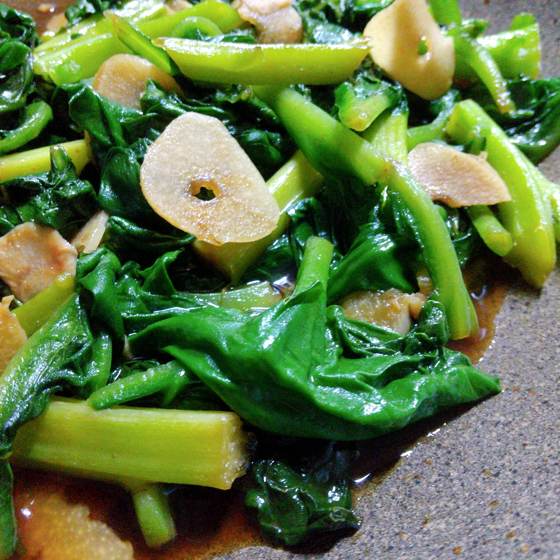 :ごま油香る【つるむらさき】ガーリック醤油炒め