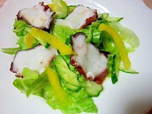 レシピを考えた人のコメント:切って和えるだけで美味しいオリジナルのカルパッチョが出来ます~タコと冷蔵庫の残り野菜で作ってみてください♪