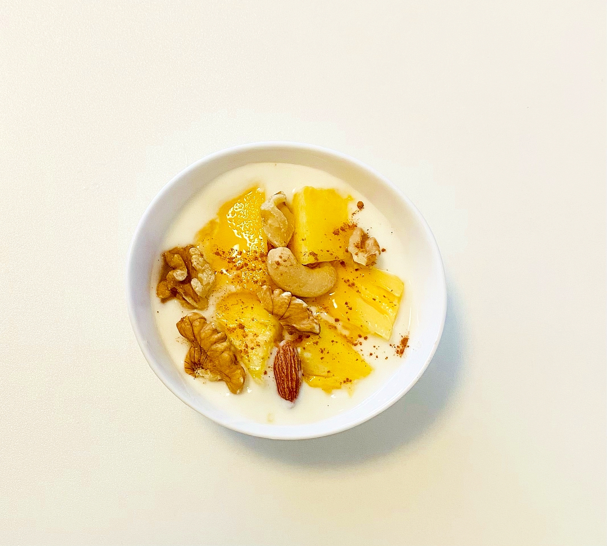 レシピタイトル:ナッツとパイナップルのヨーグルト