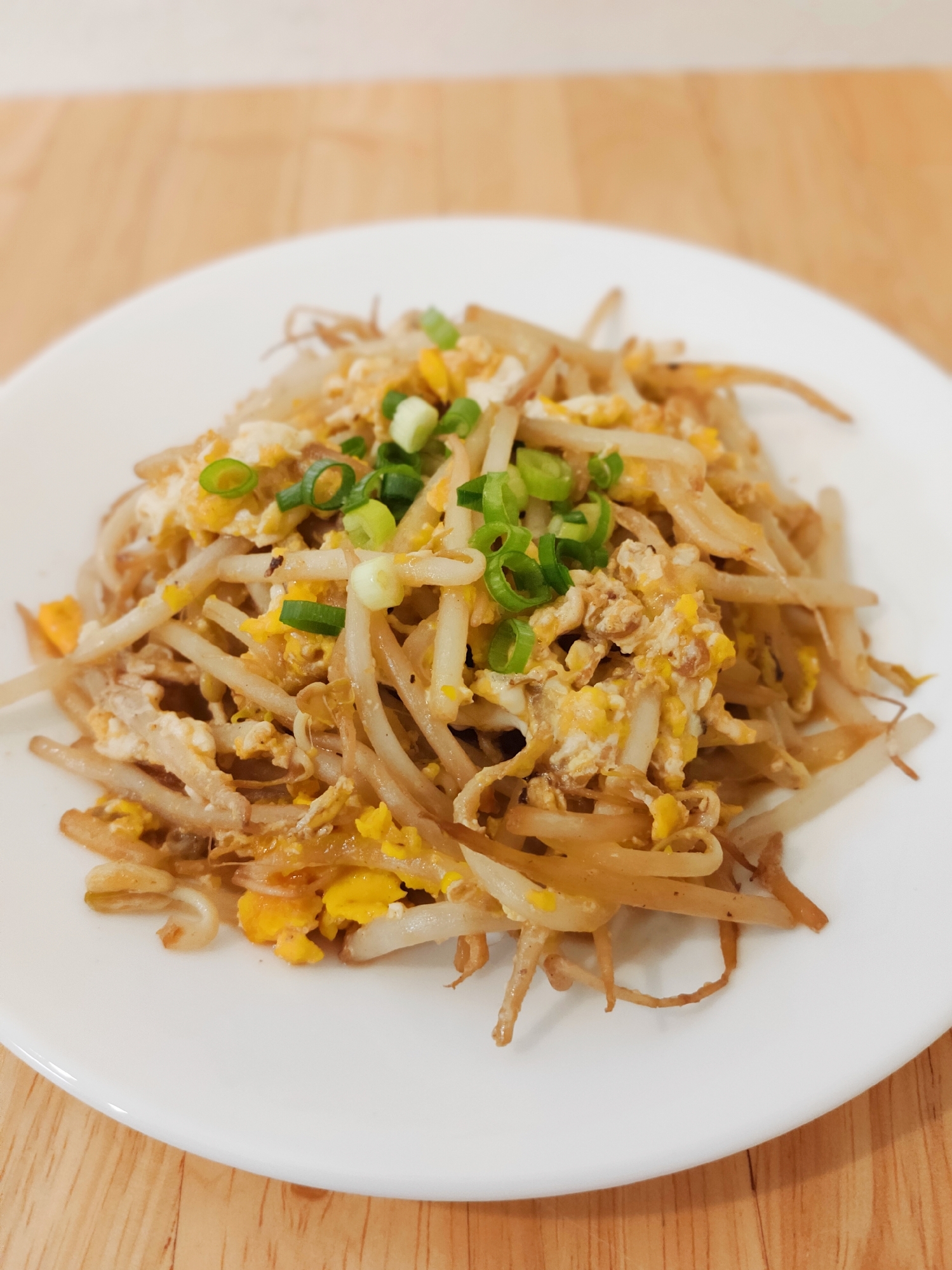 :もやしをごま油でシャキッと炒めて、だし醤油を入れて卵とじにしました。だしと甘みがまろやかで優しいお味です( ´ω` )/ 麺つゆでもOK♪