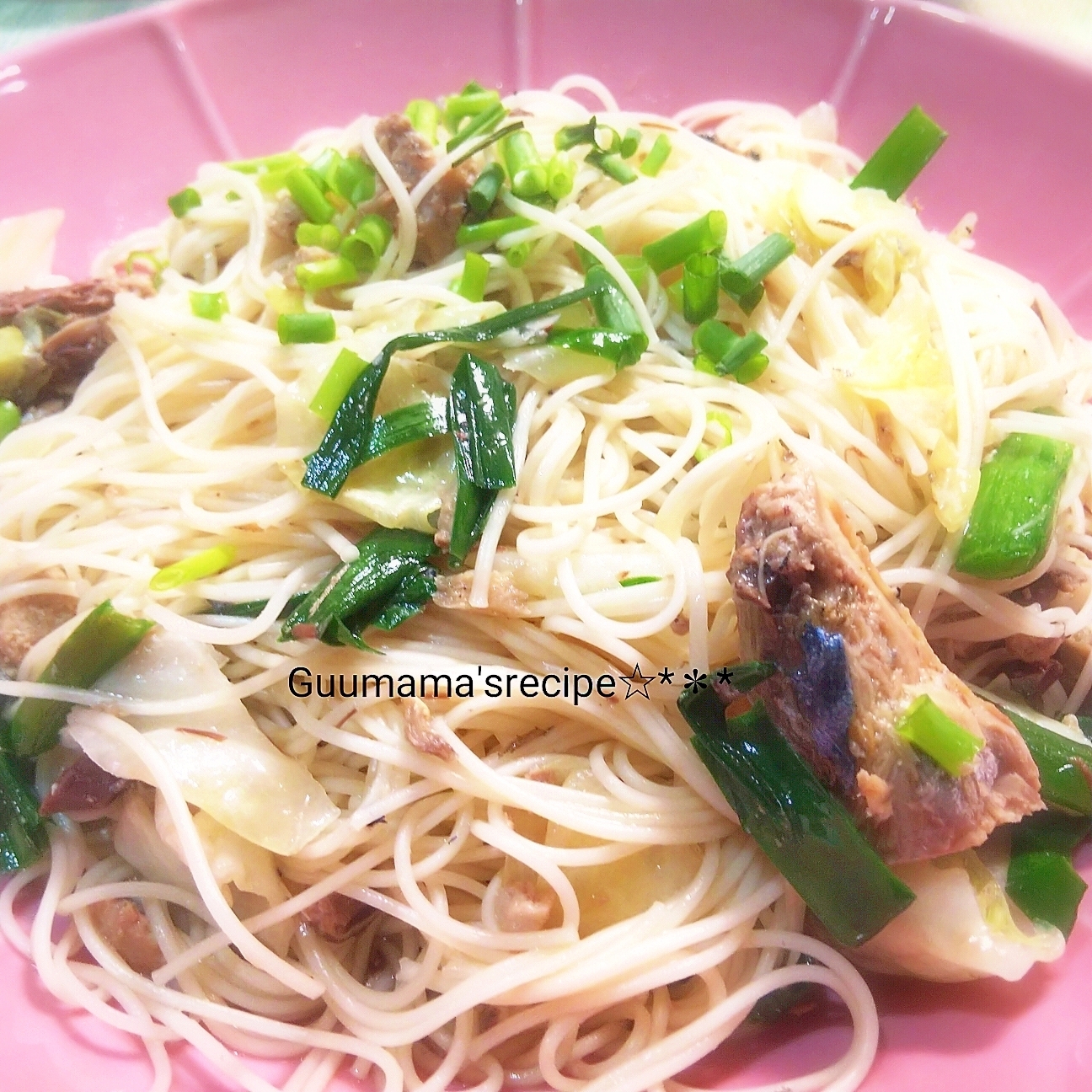 めんつゆで簡単♡サバ缶のそうめんチャンプルー