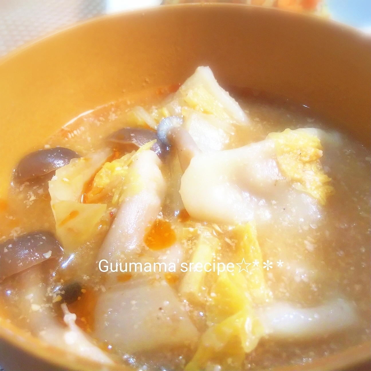 :ポカポカ温まる〜♡ピリ辛♡餃子と白菜の坦々風スープ