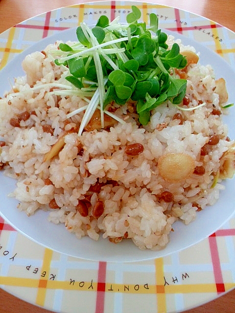 レシピを考えた人のコメント:納豆入りガーリックチャーハンです★