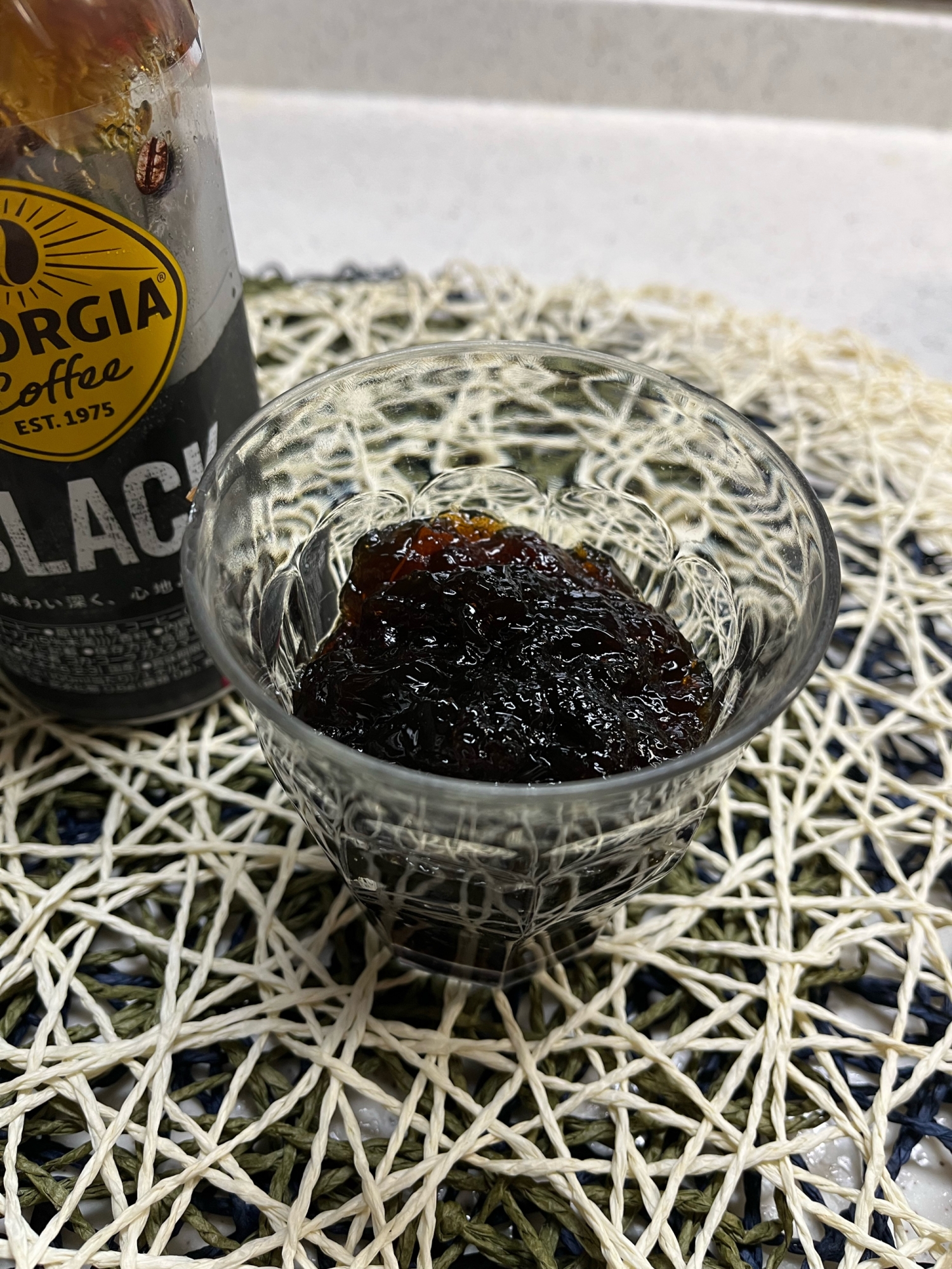 :ペットボトルのブラックコーヒーを、容器のままゼリーに。洗い物が少なくて楽です。ゼリーは、柔らかめの仕上がりで、ボトルを押すと出て来ます。