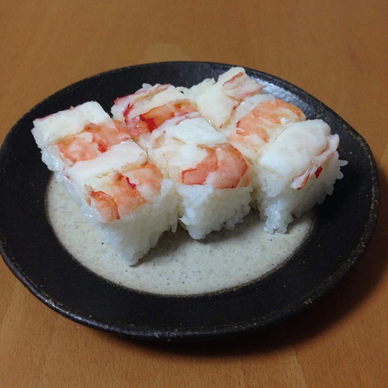 レシピを考えた人のコメント:茹でえびを使って簡単に押し寿司♪