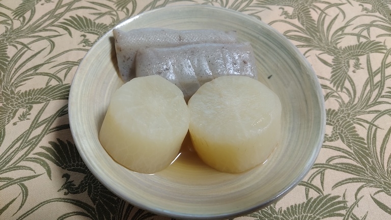 レシピタイトル:簡単 大根とコンニャクだけのおでん