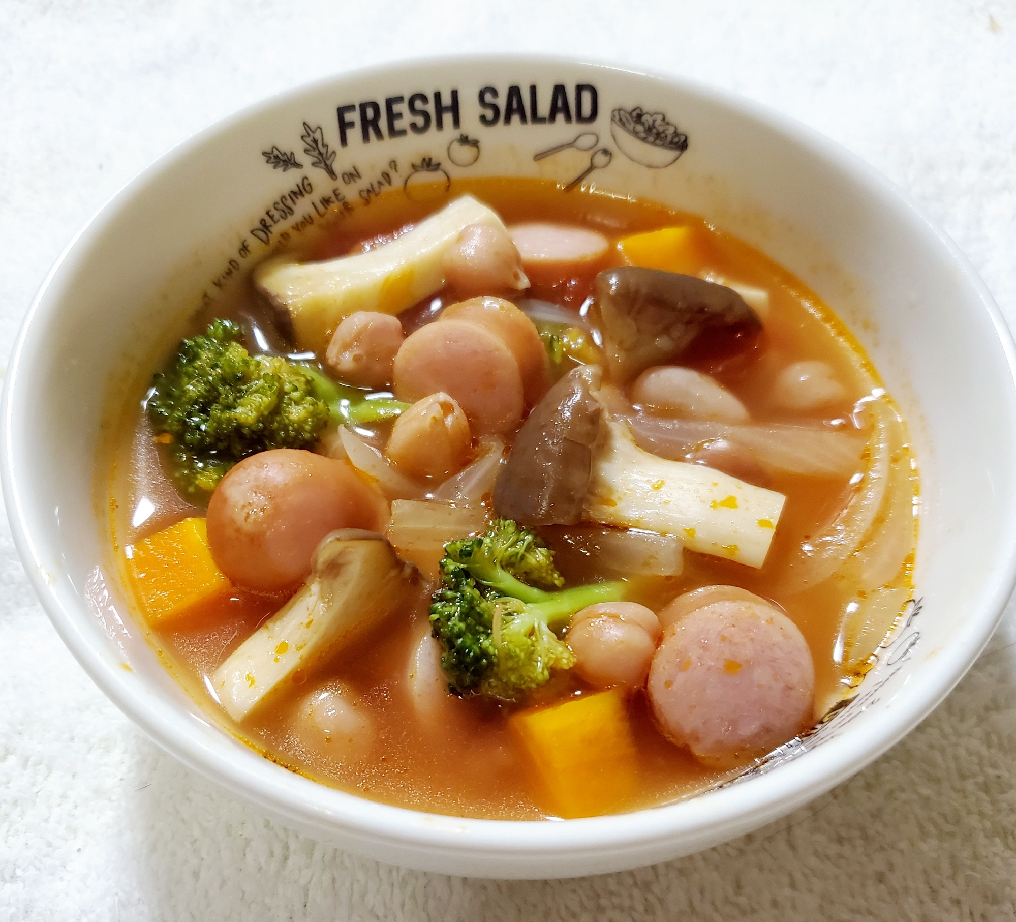 レシピを考えた人のコメント:ひよこ豆と野菜たっぷりの優しいスープです。