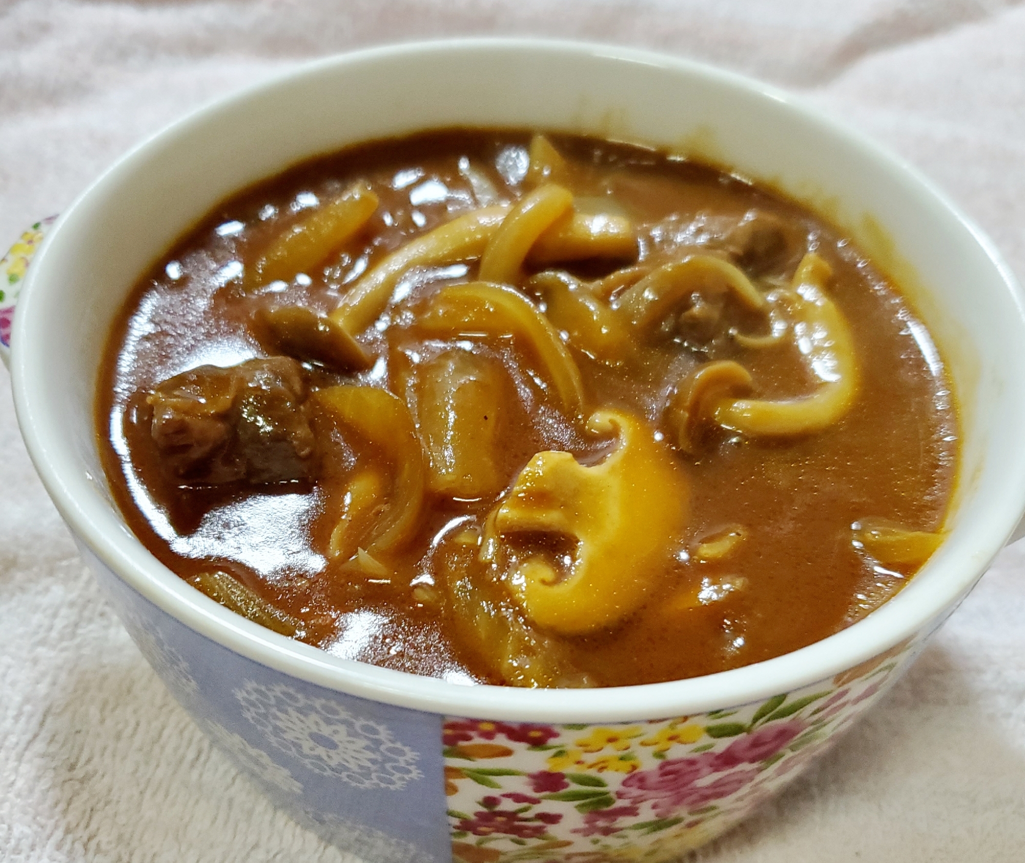 レシピを考えた人のコメント:牛肉ときのこを煮込んだハッシュドビーフです。