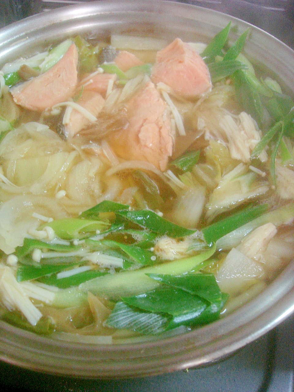 レシピタイトル:さわやかな酸味で温まろ◎中華風鮭鍋