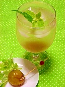:ちょっと熟した梅で作った梅ジュース、梅は竹串で穴を開けたのでシワシワに萎まず、発酵止めの加熱によって甘露煮まで出来ました!