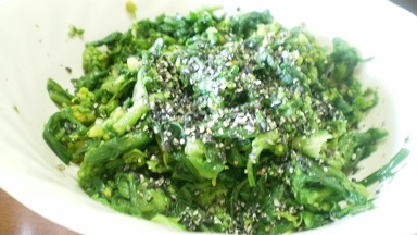 レシピを考えた人のコメント:畑の春菊と菜花で辛子醤油和え