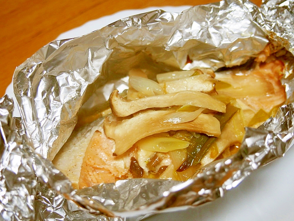 レシピを考えた人のコメント:鮭とエリンギをあわせてホイルで焼きました♪エリンギの食感がいいですよ♪