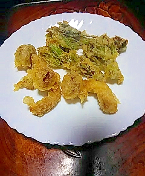 レシピタイトル:特大しめじ&たらの芽の天ぷら