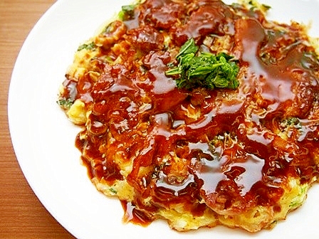 :栄養満点ほモロヘイヤをお好み焼きに入れました!手軽にお好み焼きで栄養とりましょう♪苦手な方もお好み焼きに入れれば大丈夫♡