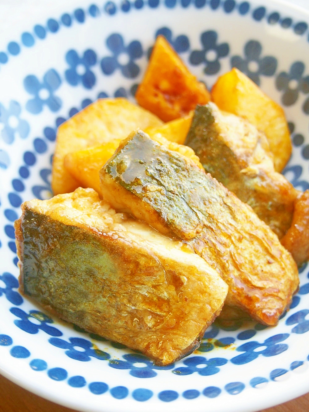 :サバとさつま芋をソテーして、カレー粉入りの照り焼きでからめました!魚料理でもボリューム満点♪さつま芋とカレー粉の相性も◎