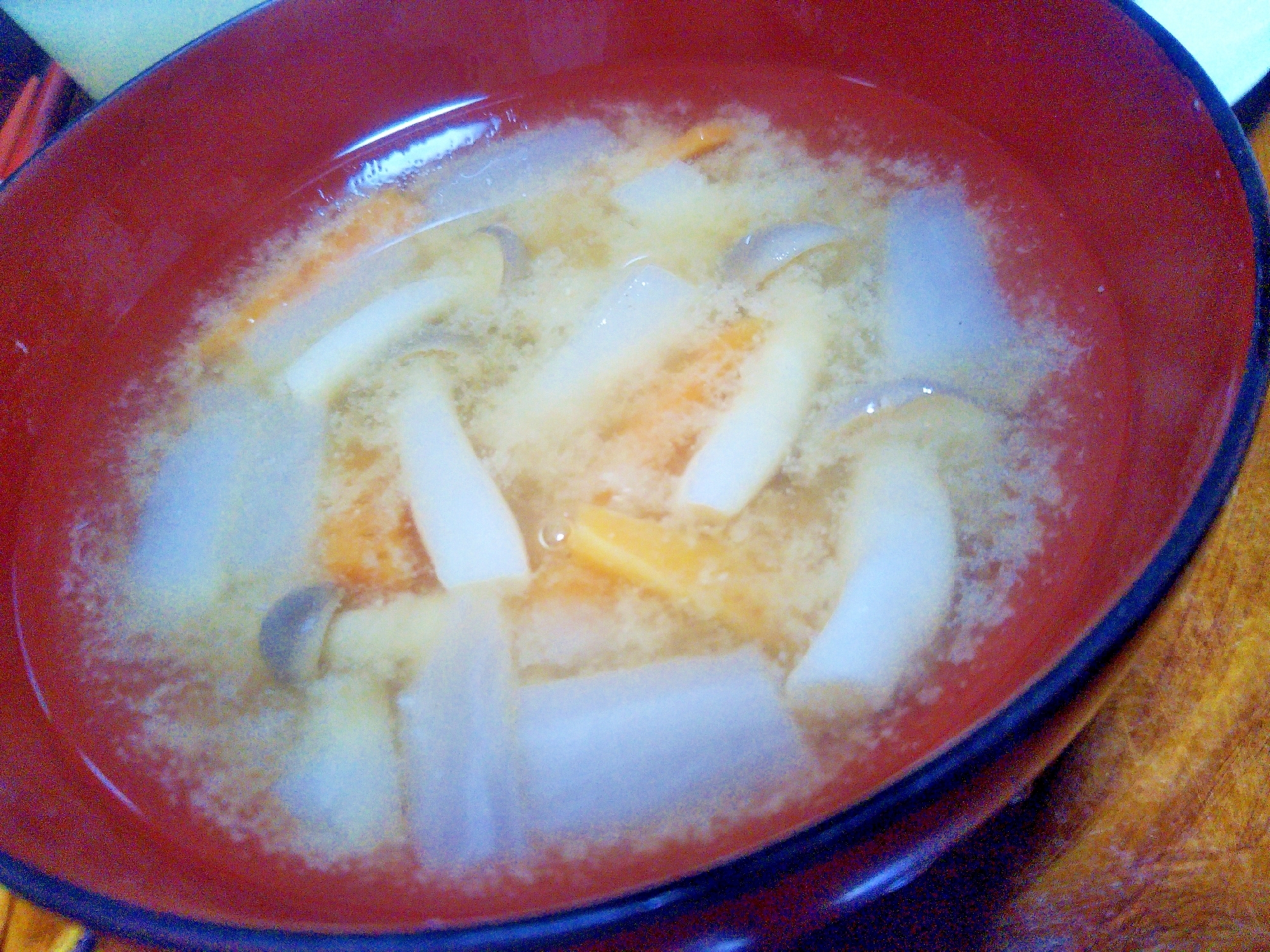 レシピタイトル:しめじ&人参&大根の味噌汁