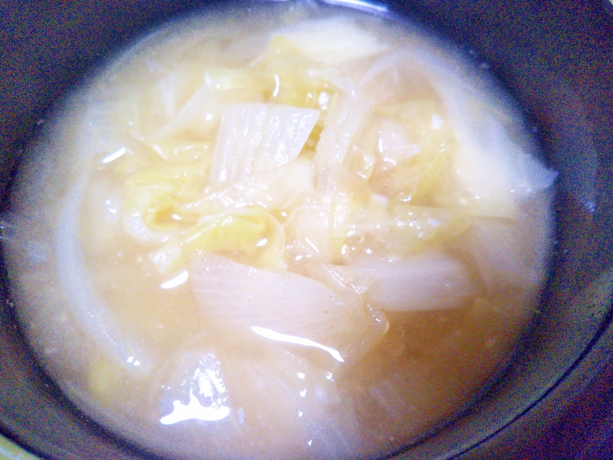レシピタイトル:玉ねぎ&キャベツの味噌汁