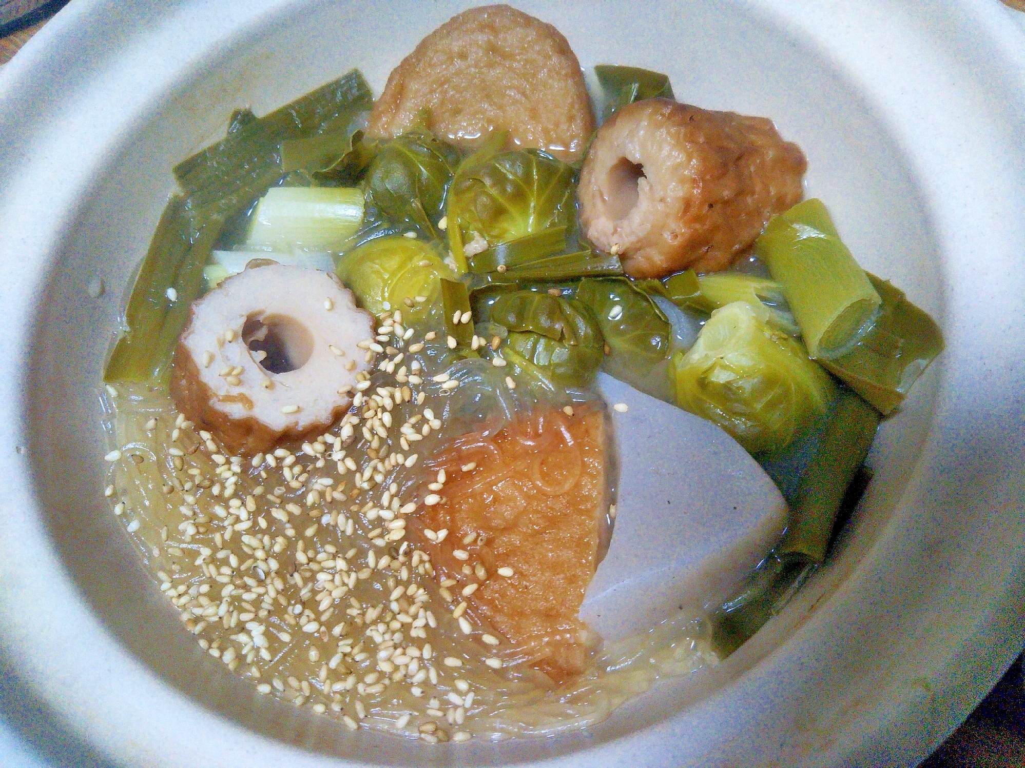芽キャベツ葉ニンニク春雨ちくわ薩摩揚おでん風