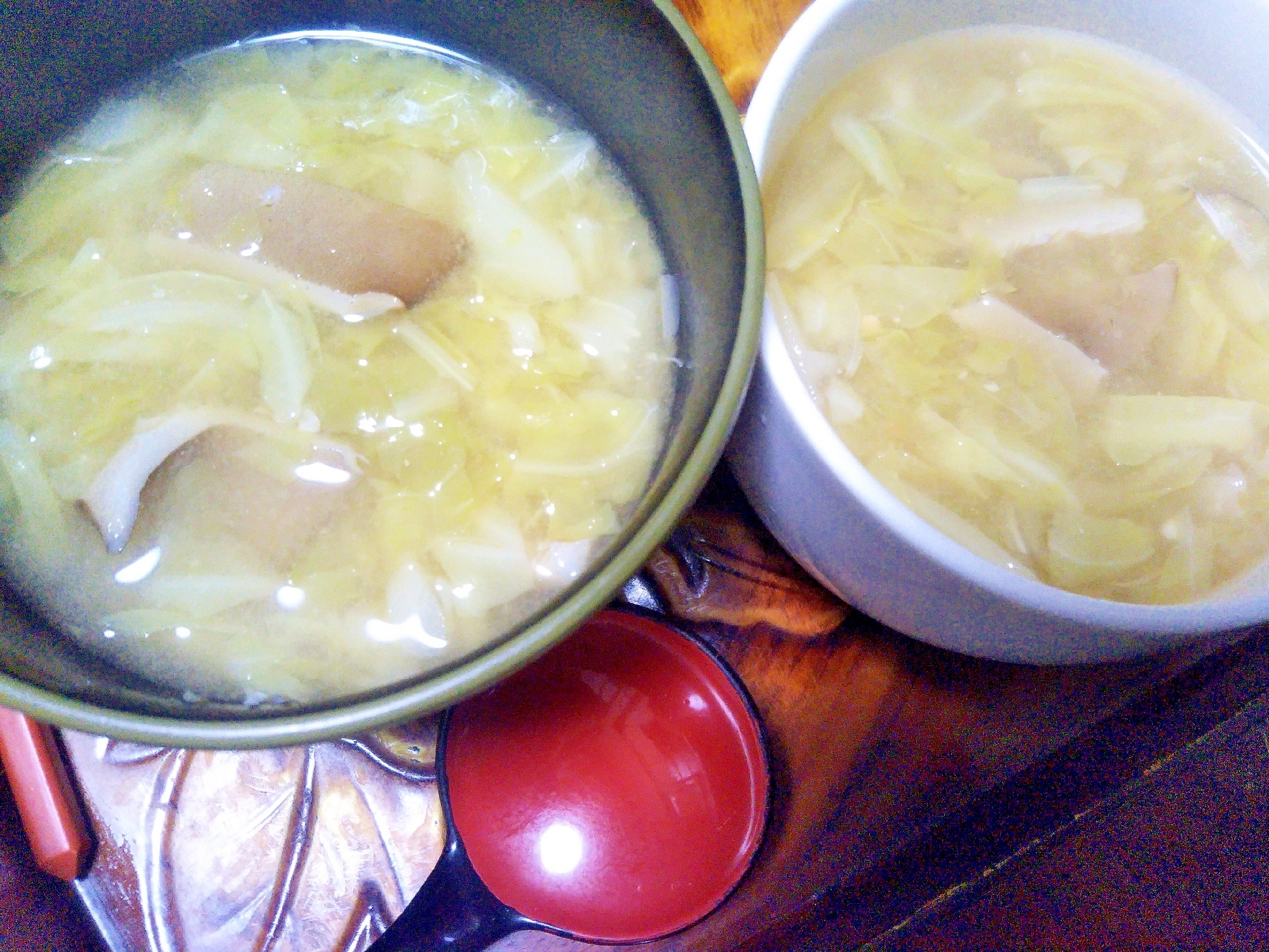レシピタイトル:キャベツ&あわび茸の味噌汁