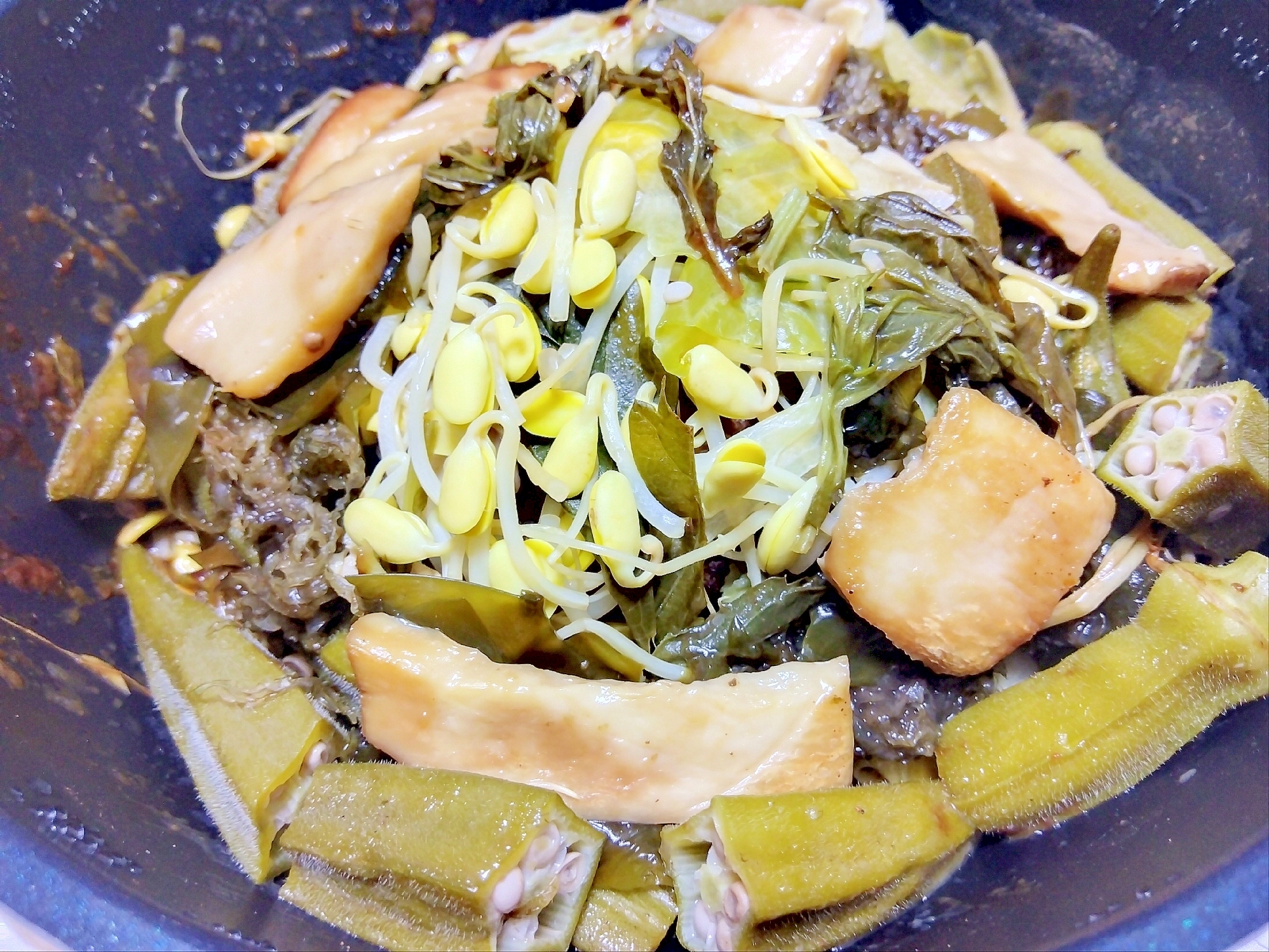 フーチバー豆もやしエリンギ海藻キャベツおくら蒸