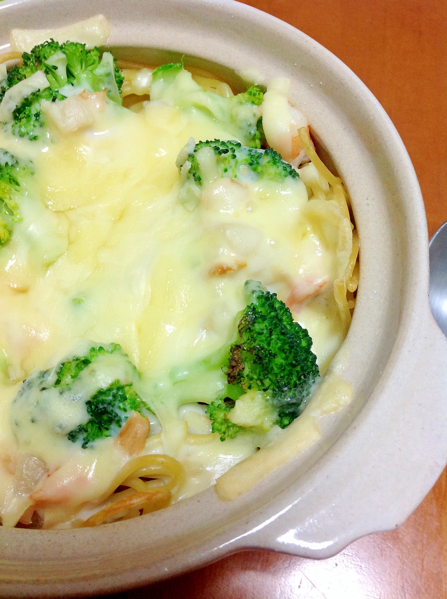 レシピタイトル:スパゲティとクラムチャウダーでグラタン