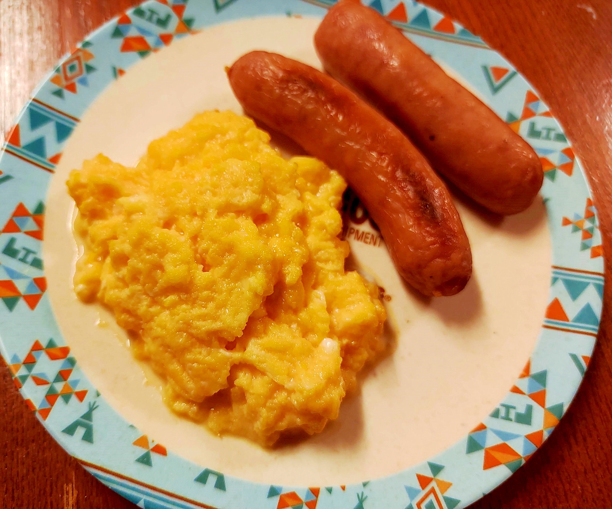 :やつはし流フランス産バターレシピ第七弾♪今回は3歳の朝食プレートとして、スクランブルエッグとウィンナーを仏産バターで(*ノωノ)やっぱりバター使うと超いい香り★