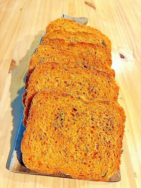 レシピタイトル:白神こだま酵母*HBでバジルとトマトの食パン