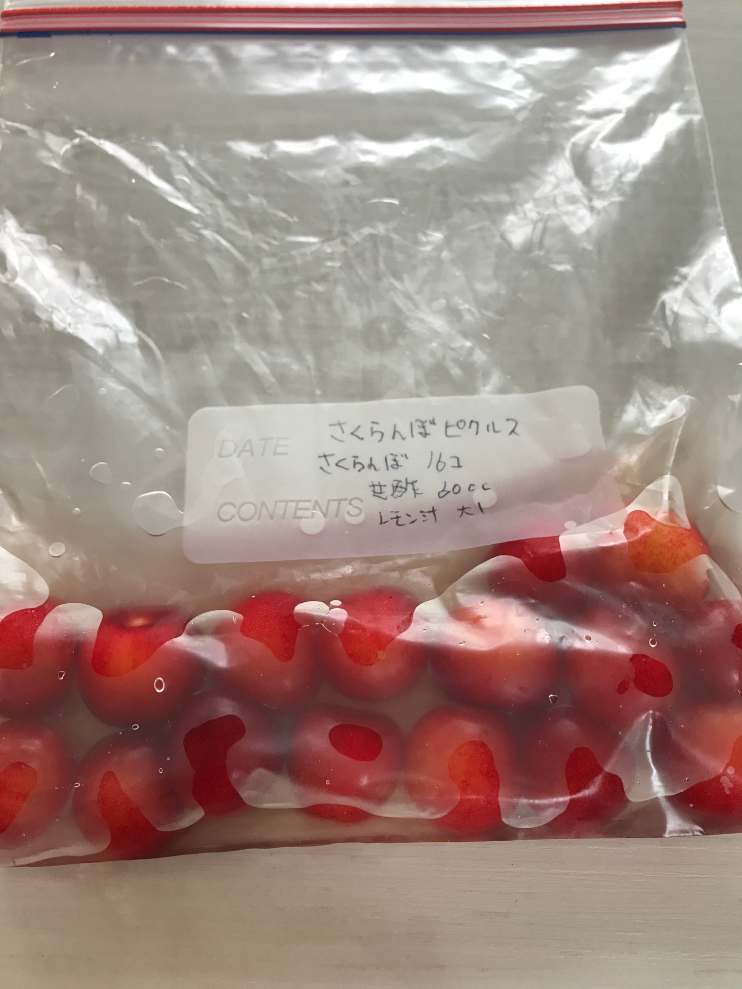 レシピを考えた人のコメント:さくらんぼを使った甘酸っぱいピクルスです