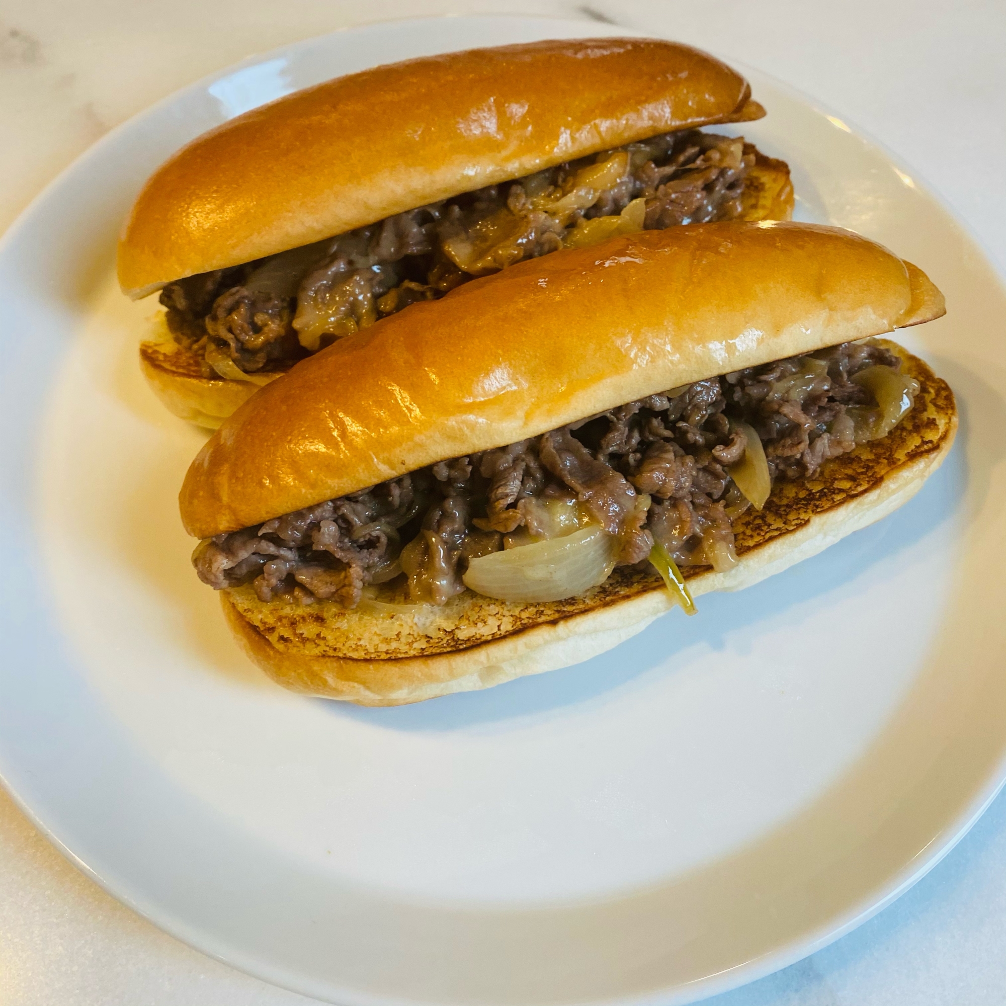 :フィラデルフィア(フィリー)の名物料理、チーズステーキです。ステーキと名前がついていますが、薄切り肉で作られるサンドイッチです。