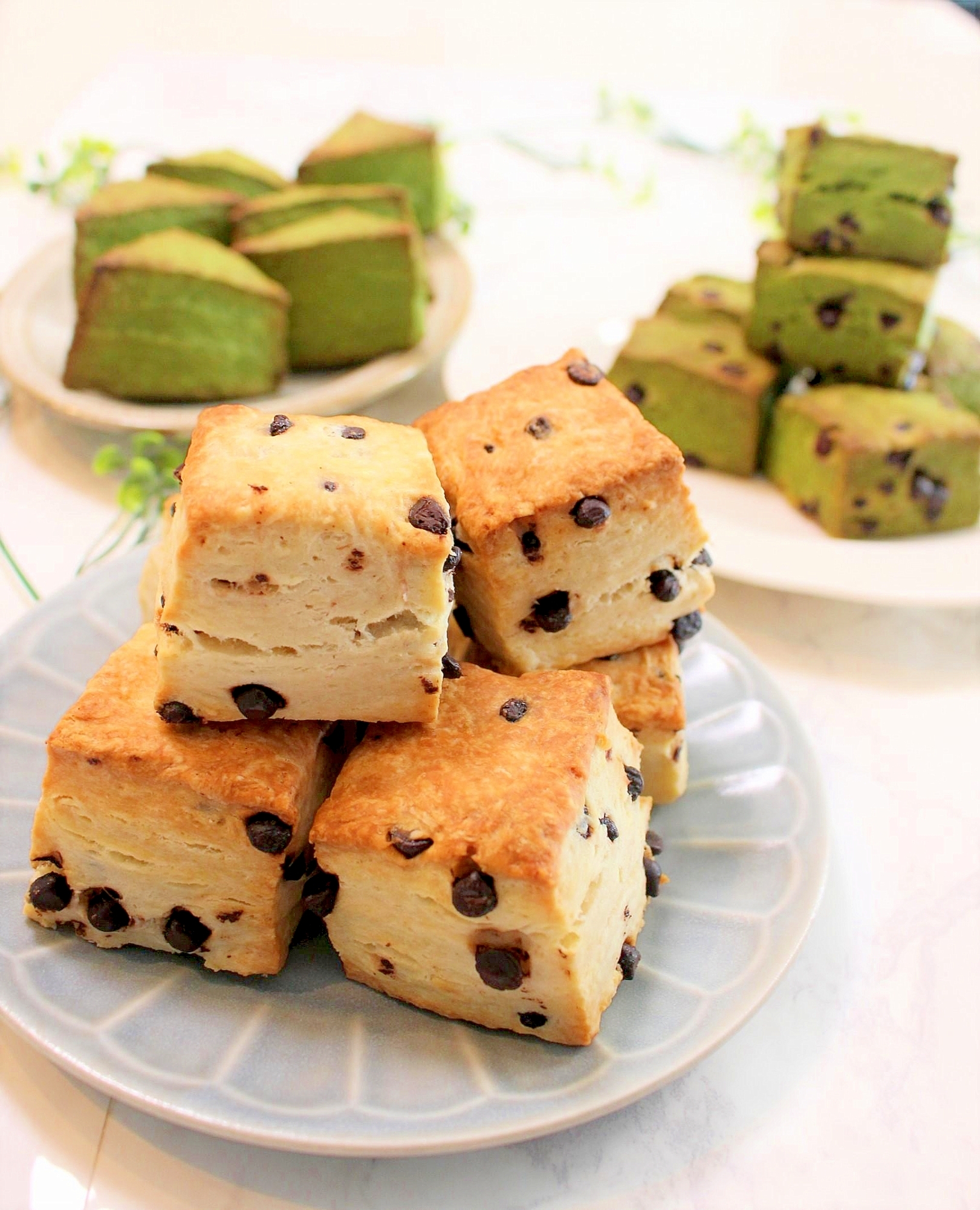 レシピを考えた人のコメント:混ぜるだけ!絶対パカッと割れて層になるサクサクふわふわもっちりのスコーンにくるみとチョコを入れました。
