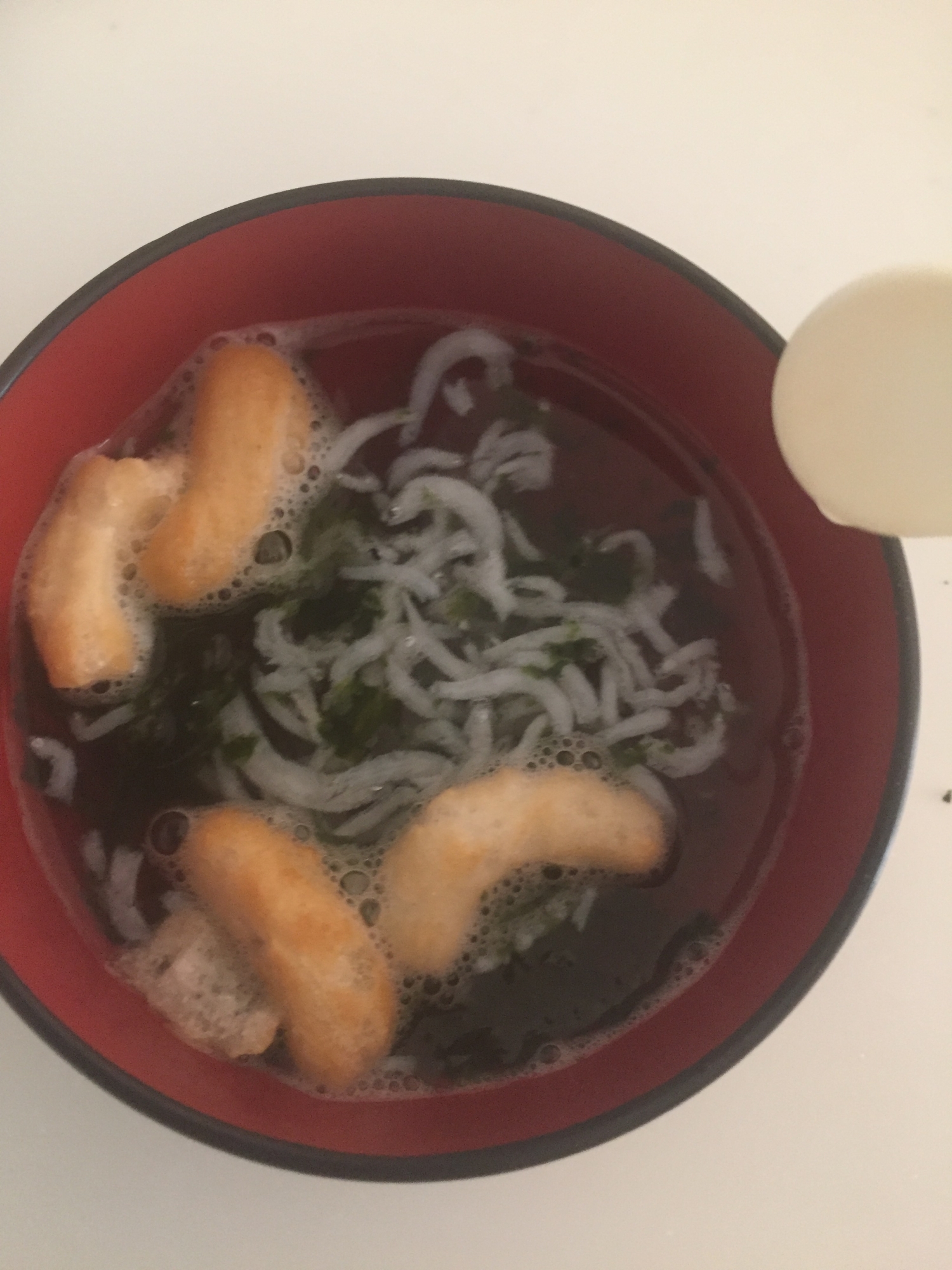 懐かしい!あおさとしらすと塩あられのお吸い物!