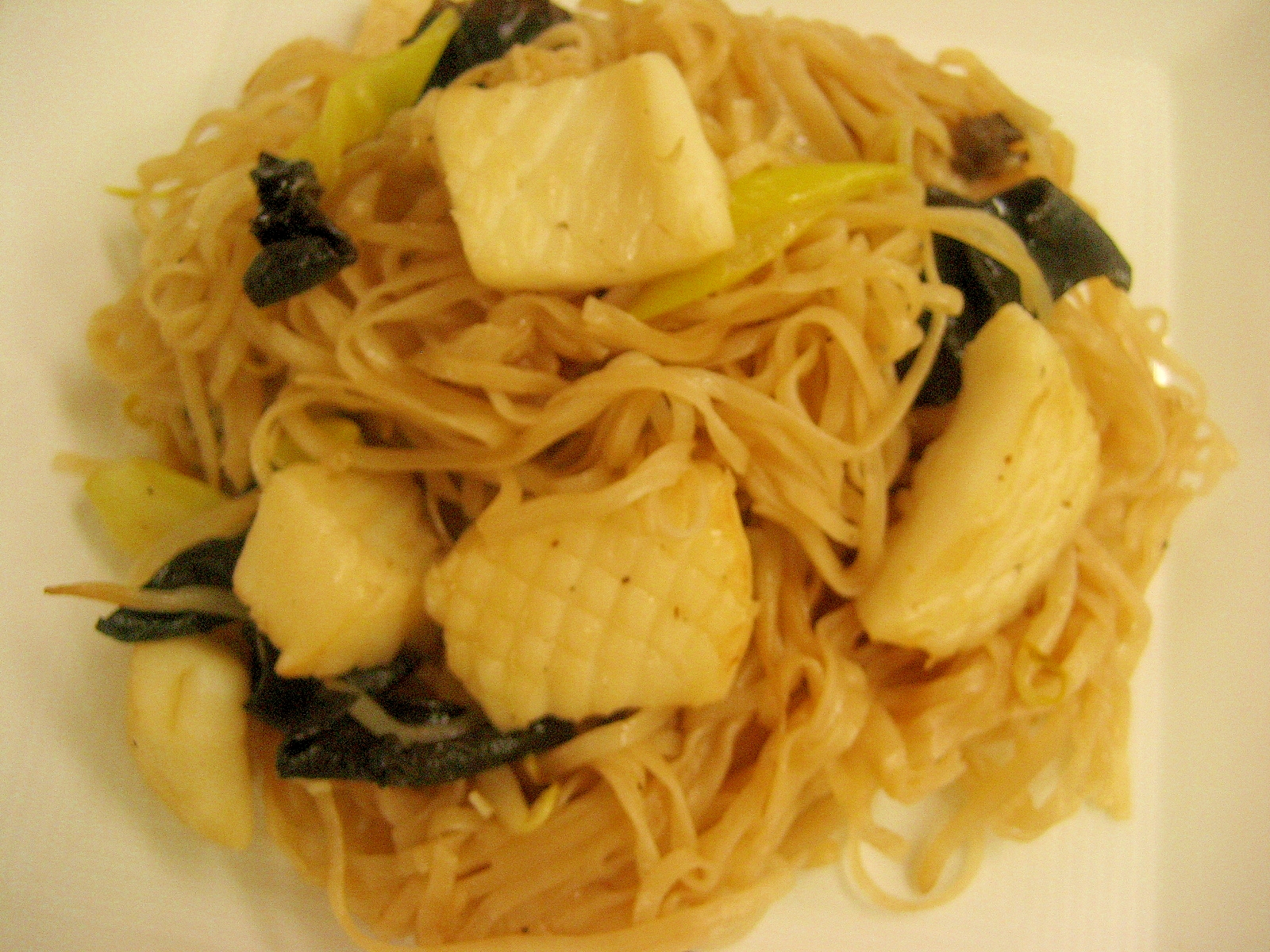 :簡単!タイ米麺でパッタイ風イカのオイスター焼きそば