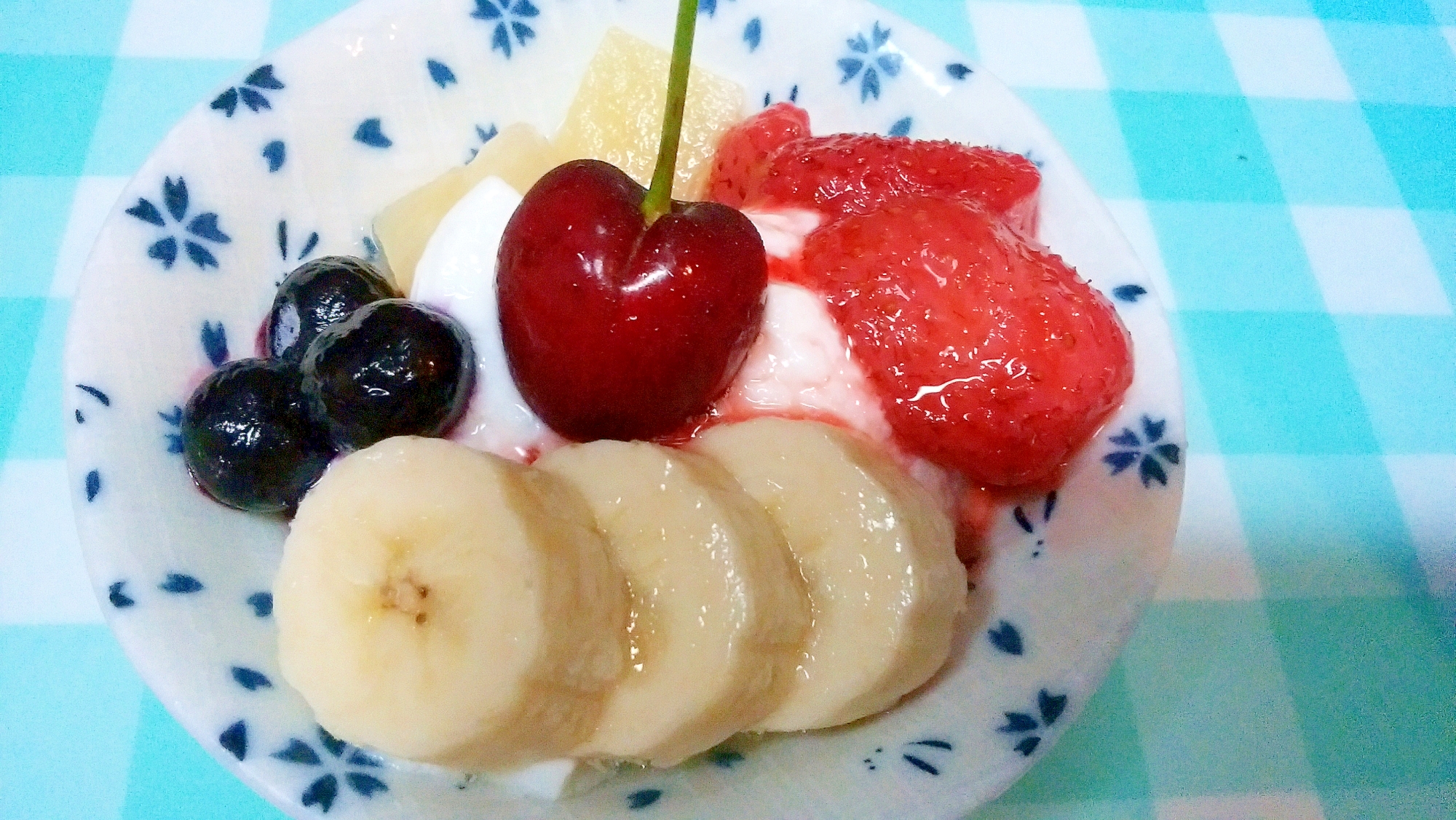 レシピタイトル:パイナップルとアメリカンチェリーのヨーグルト♪