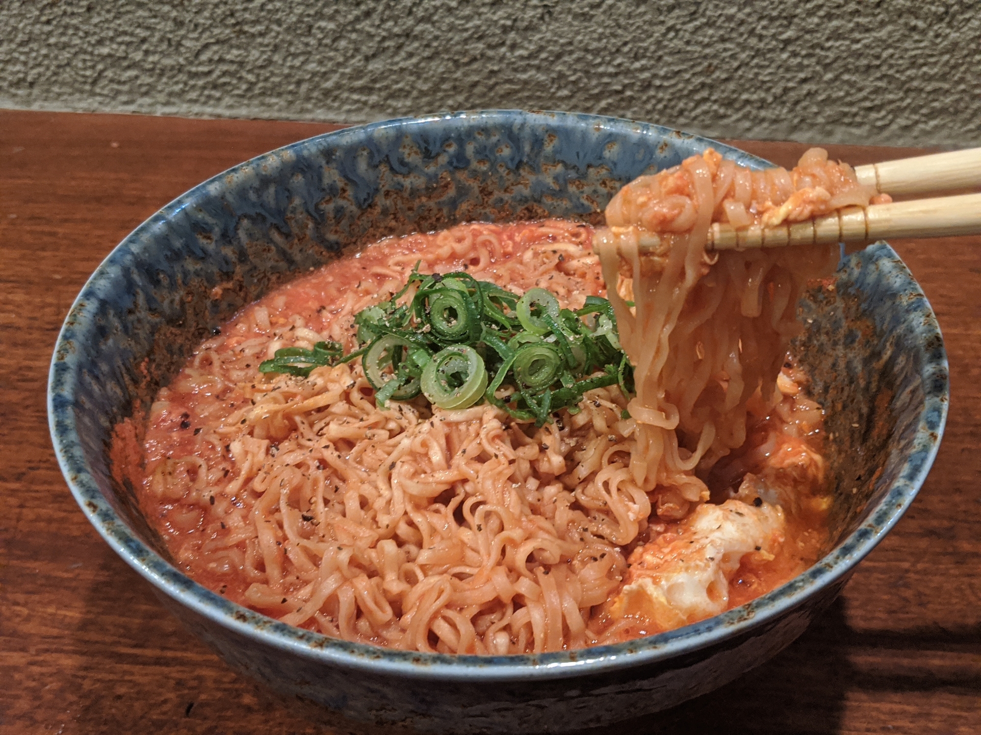 レシピを考えた人のコメント:トマトの酸味とチキンラーメンの味が めっちゃ楽しめるトマトラーメンです