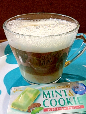 :コーヒーにミント!?と思うけど・・・これが美味しいんです☆* 知人のお家で頂いた味を、グリコ ミント&クッキーチョコレートで再現できました!