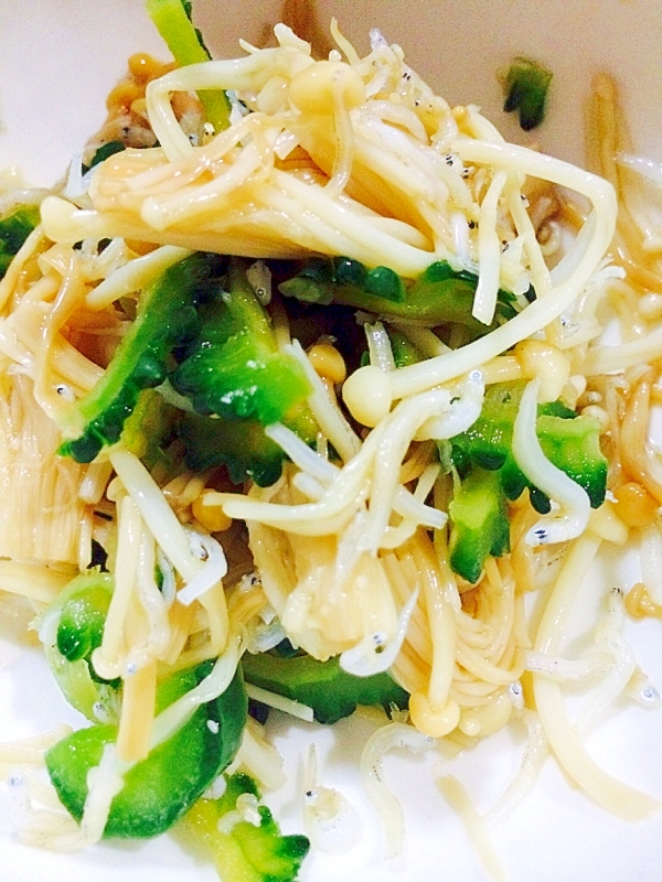 レシピタイトル:ゴーヤとエノキのじゃこポン