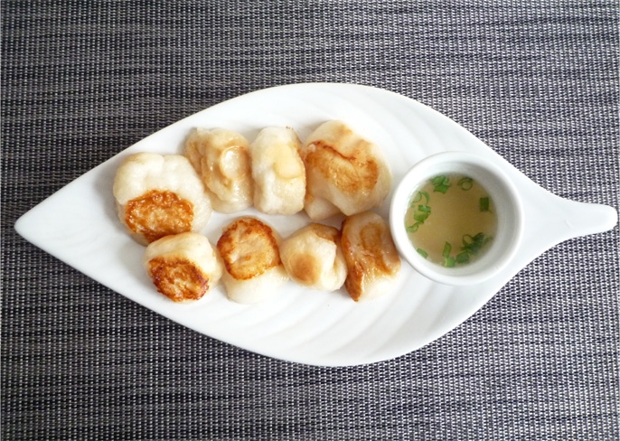 レシピを考えた人のコメント:だしをたっぷり含ませたもち麩をだし汁で頂く、明石焼き風のお麩料理です。