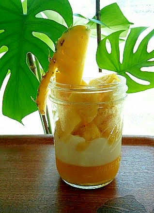 :2層に分かれたゼリーは、甘いのと酸っぱいのと絶妙なバランス!おうちで南国気分いっぱいのメイソンジャーレシピで~す!