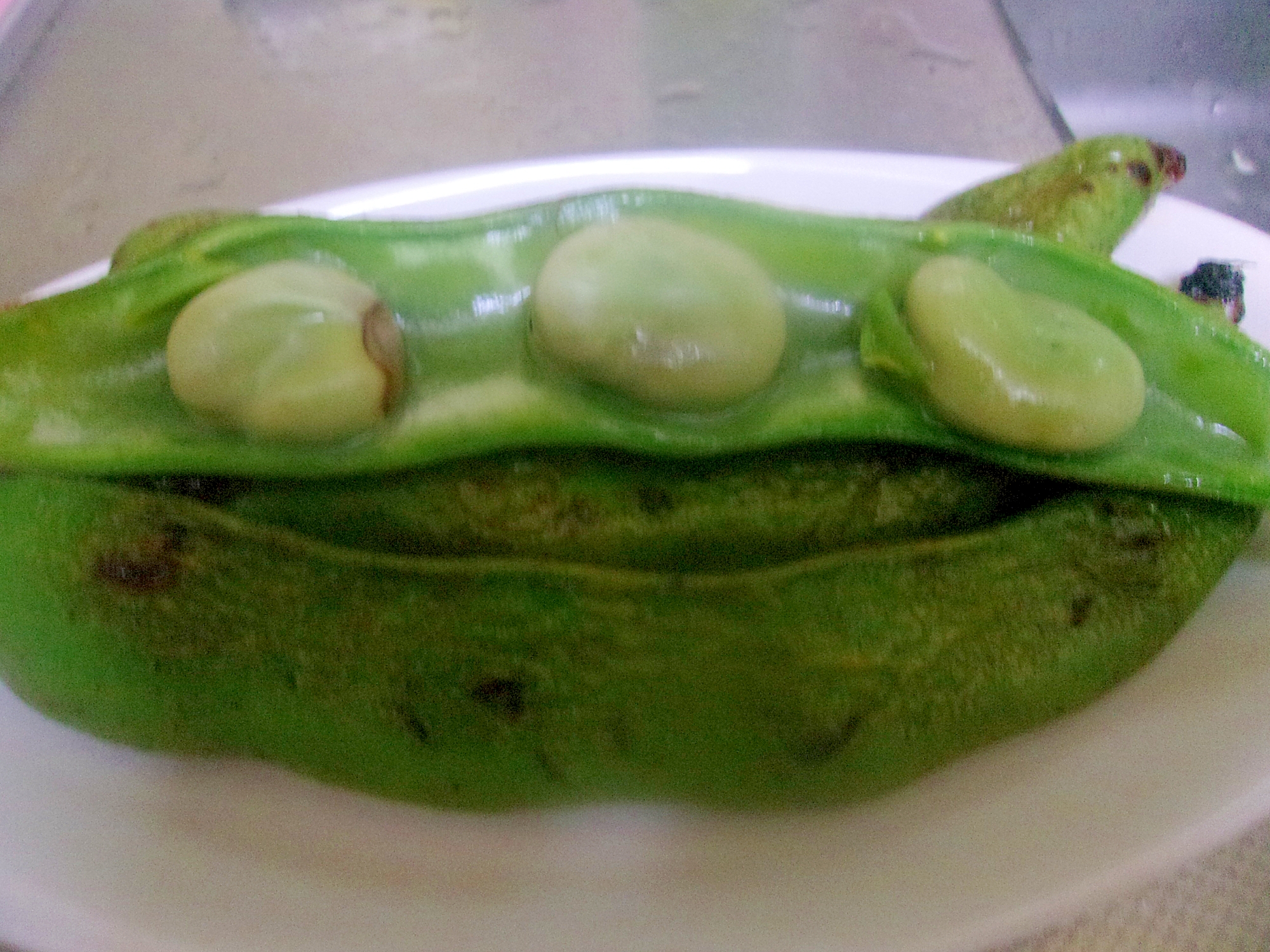 :ソラマメが4本余り、たまたま友人が ソラマメの蒸し焼きがおいしいと作り方を教わりアレンジしてみました。