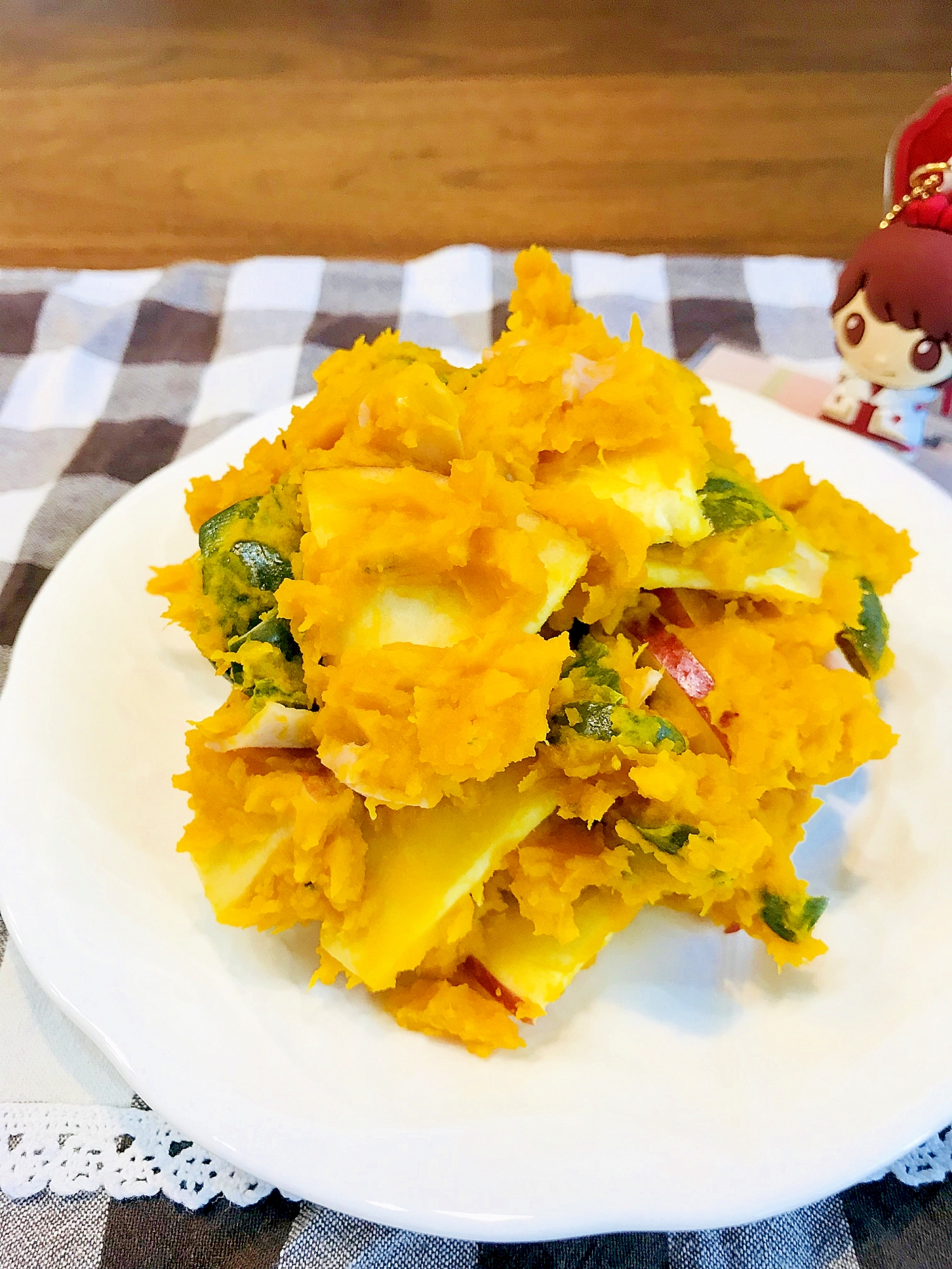 レシピタイトル:とっても簡単!かぼちゃとりんごのサラダ