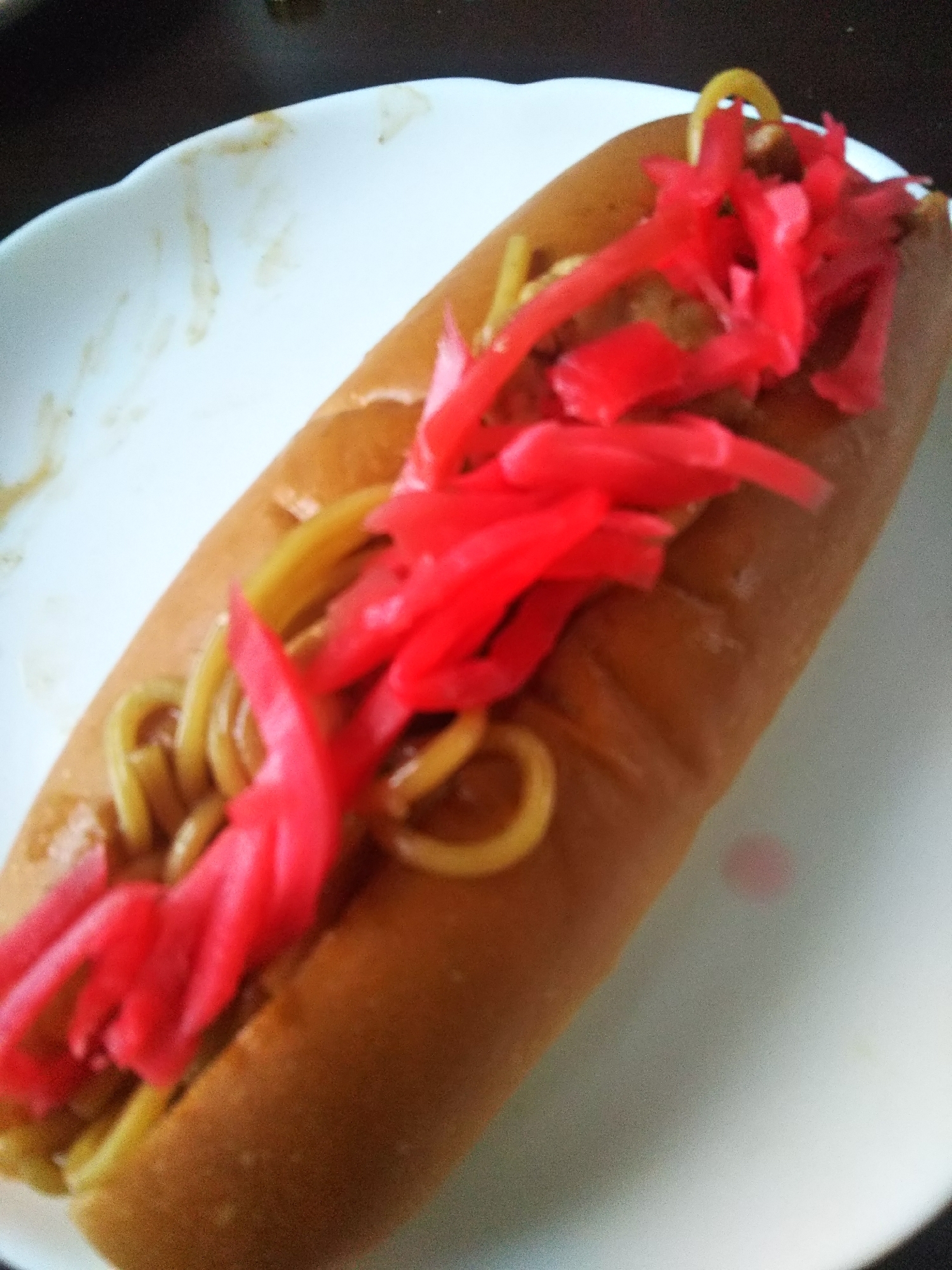紅しょうがたっぷり焼きそばのホットドッグロールパン