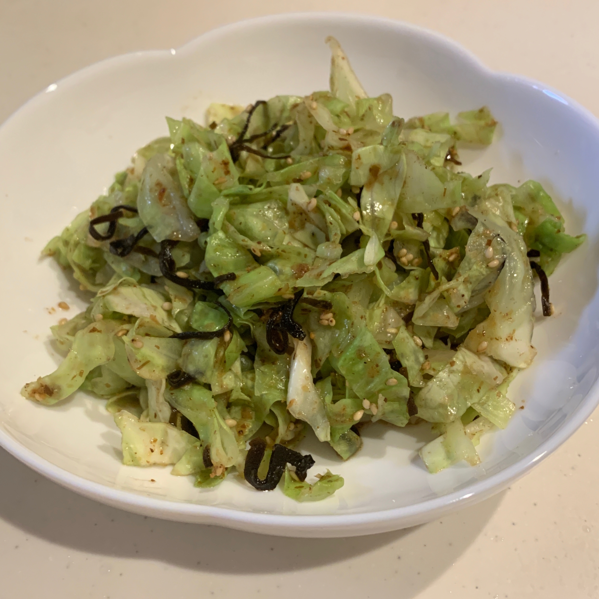 レシピタイトル:簡単!キャベツの塩昆布おかか和え