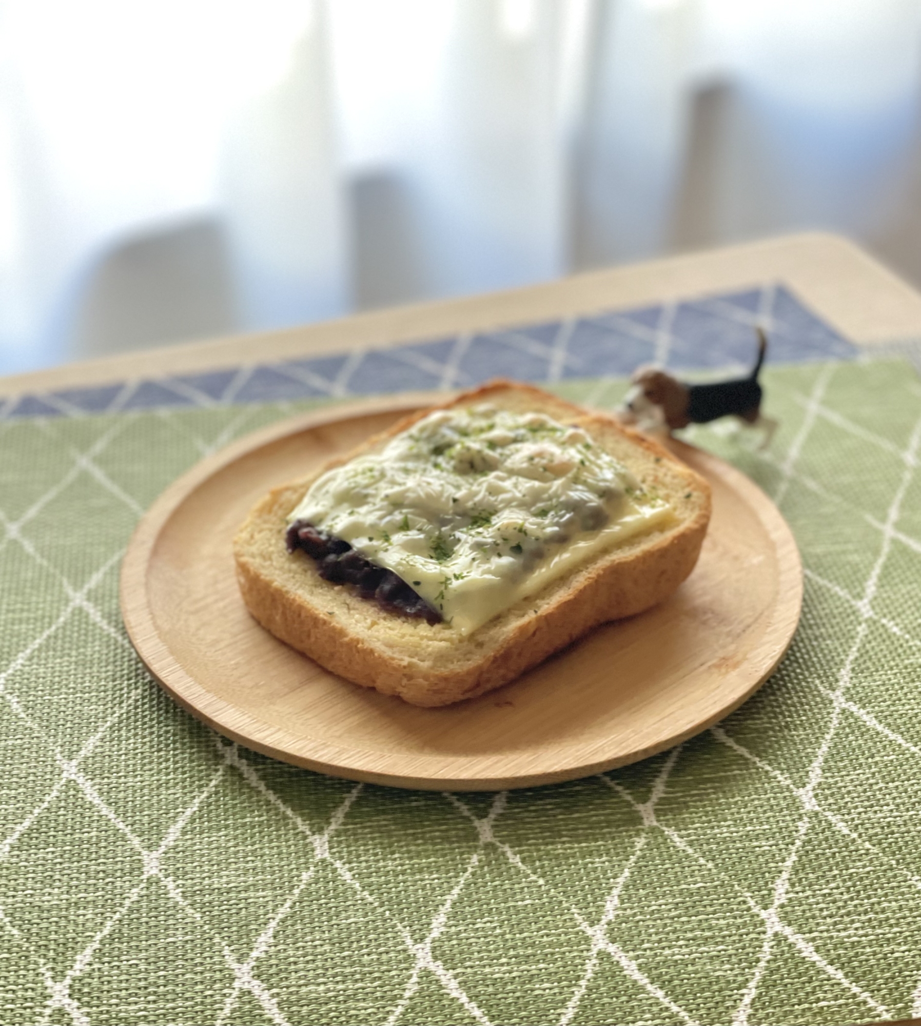 レシピを考えた人のコメント:餡子とチーズのハーモニーが最高! 一味違うチーズトーストを楽しめます♡