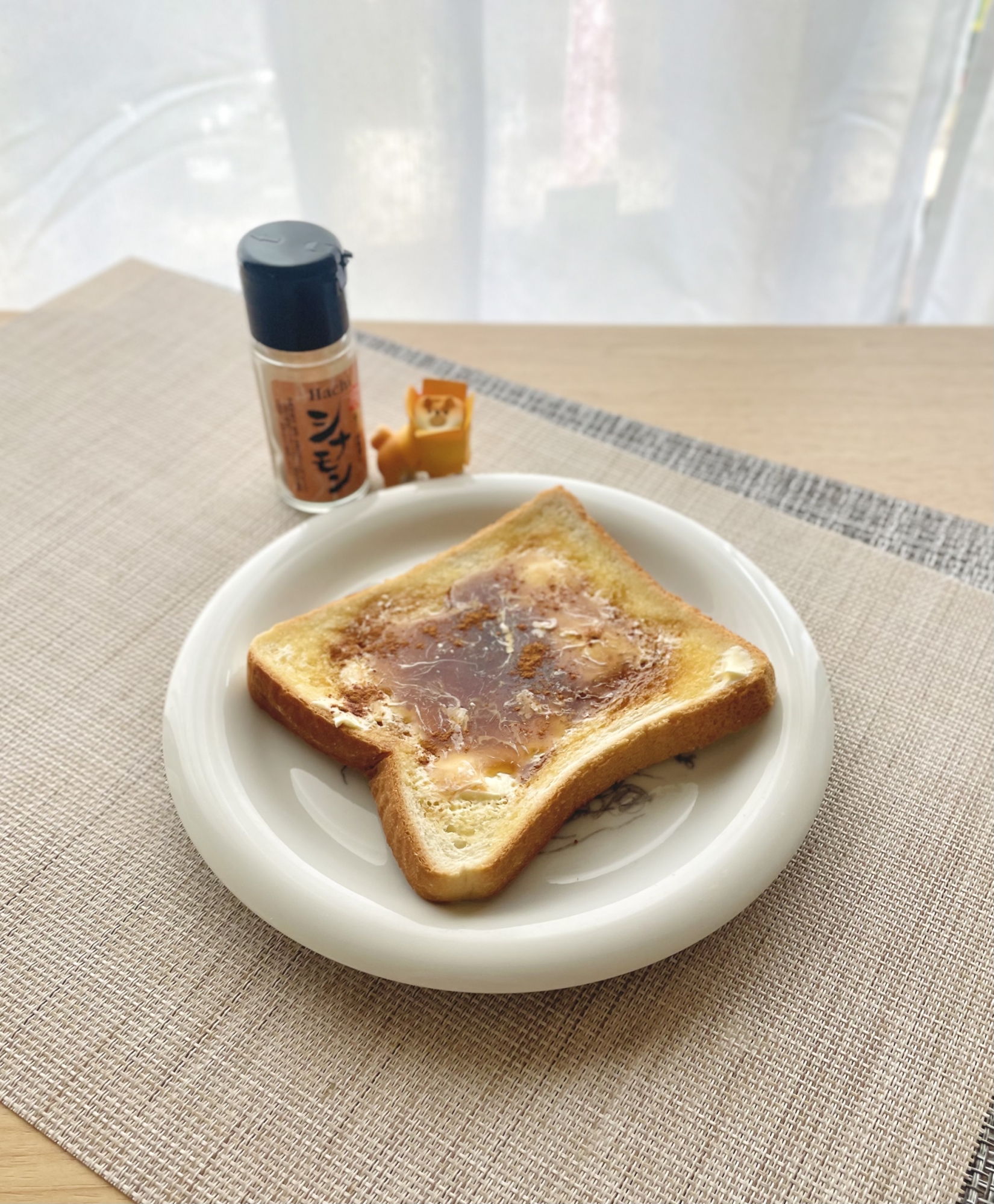 :シナモン香る黒蜜トースト…マーガリンの塩気が加わり本格・和菓子気分を楽しめます٩(^‿^)۶