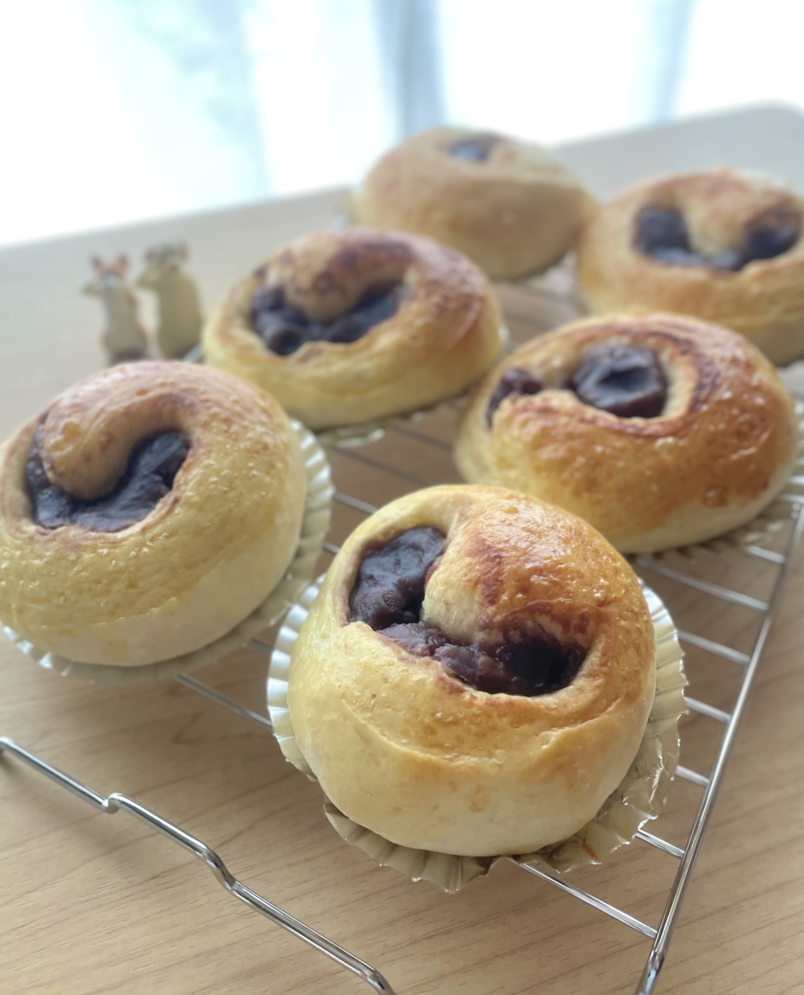 :生地作りはHBにお任せ… 簡単に可愛い餡子ロールが作れちゃいますょ!プレゼントにもおすすめです(^-^) しっとりふんわりパンに餡子がたっぷり入っています♡